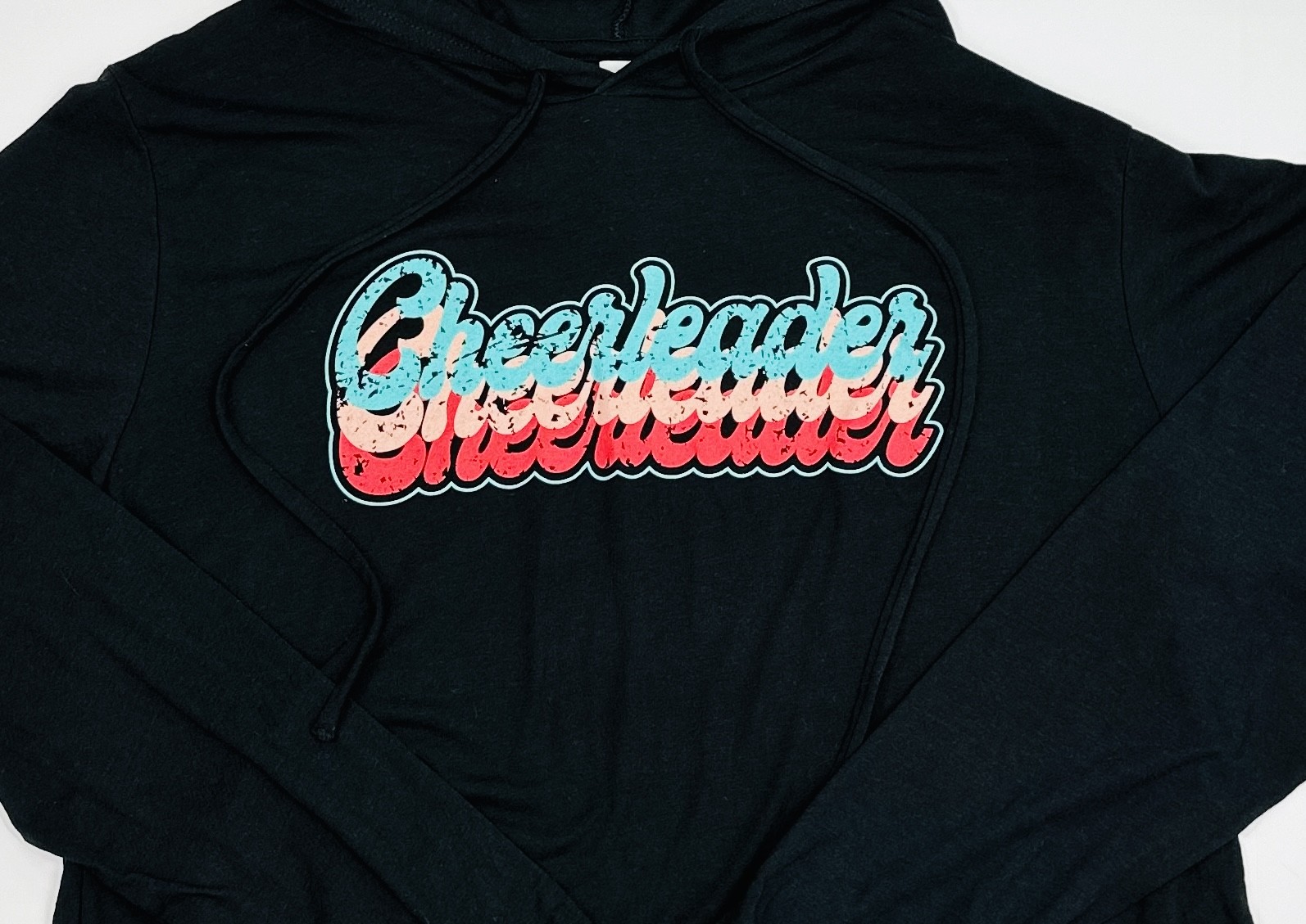 Stand out in the crowd with Cheerleader Retro Crop Black sweatshirt. Eye-catching design, comfortable fit, and durable fabric. Get yours today and show off your retro cheerleader style! Available in AL and AXL sizes.